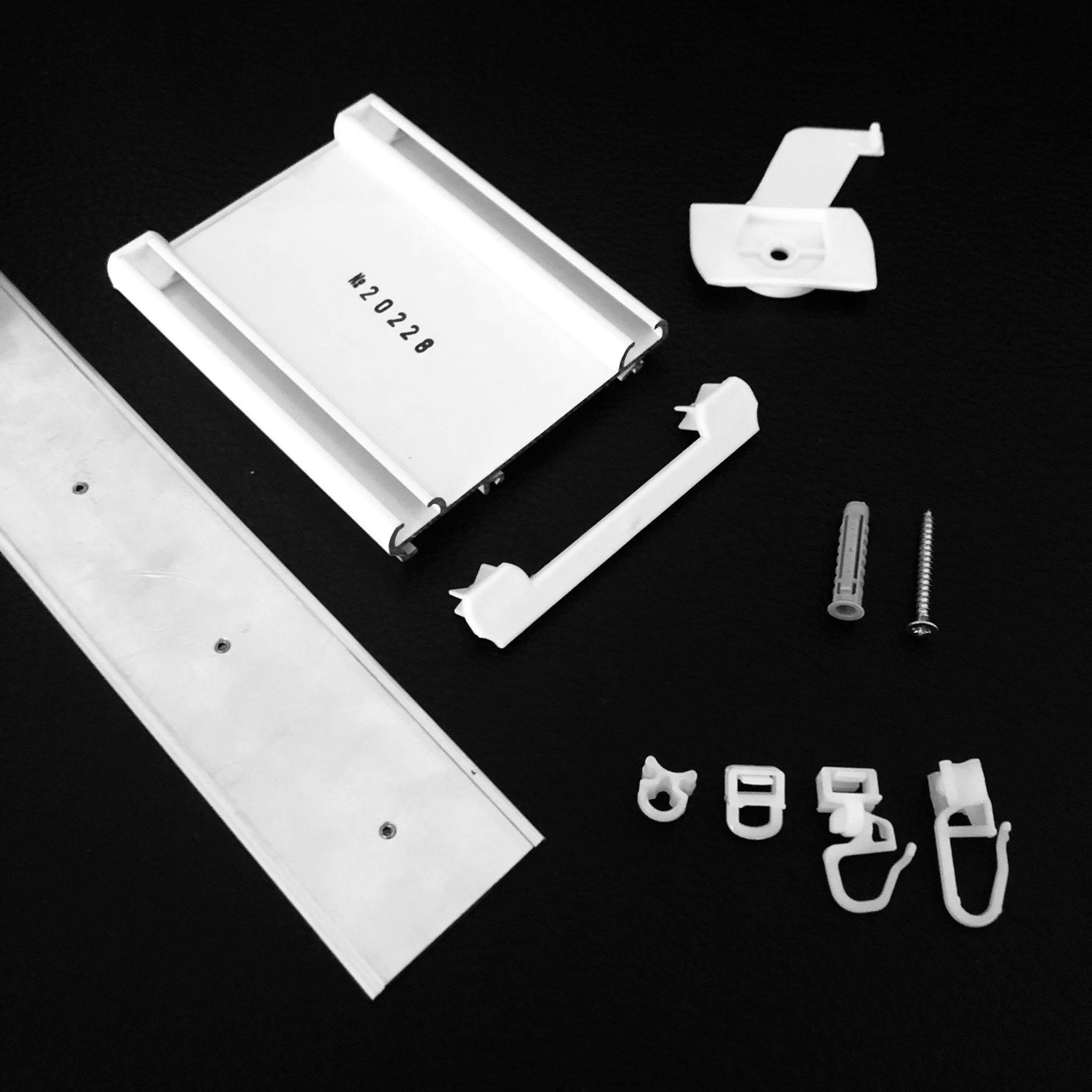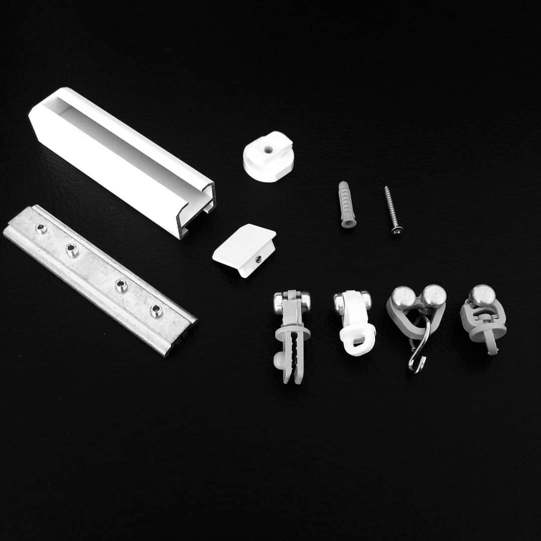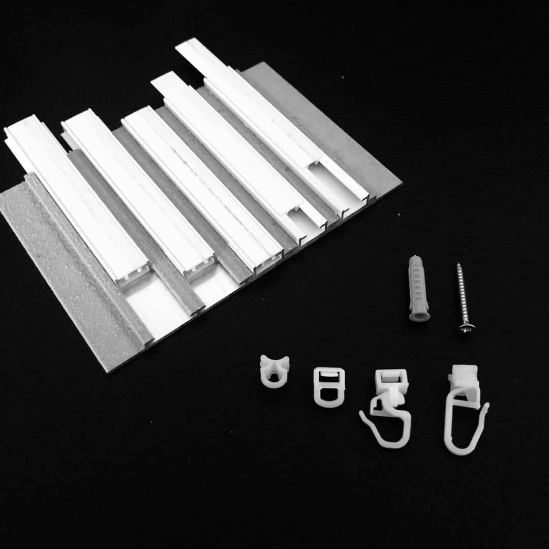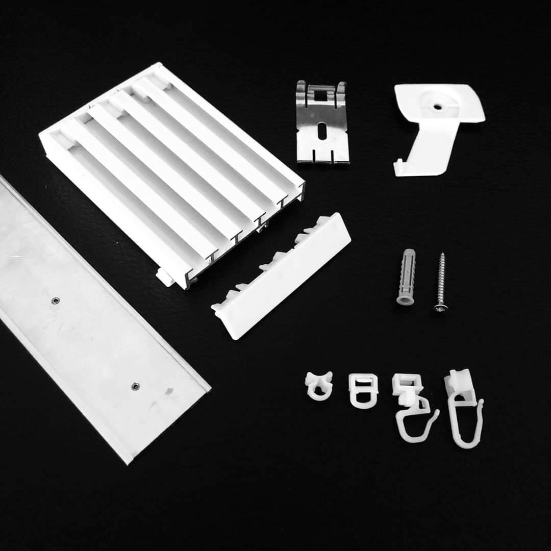 5-Lauf-Flächenvorhangprofil-System für die Montage mit Spannriegel auf Beton, Gips oder Holz.