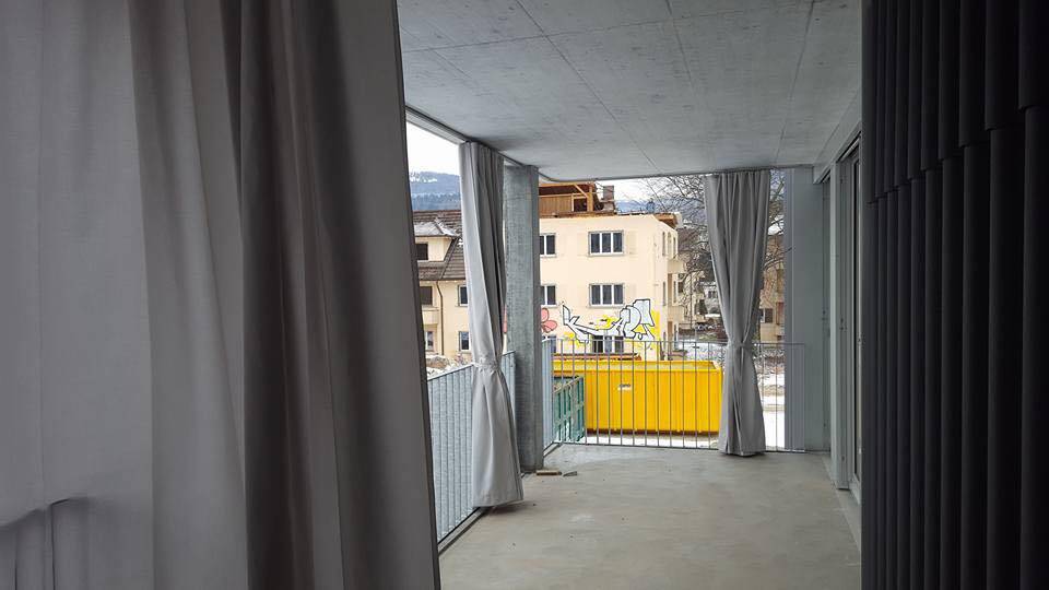 Vorhangprofil für die Unterputzmontage auf Beton.